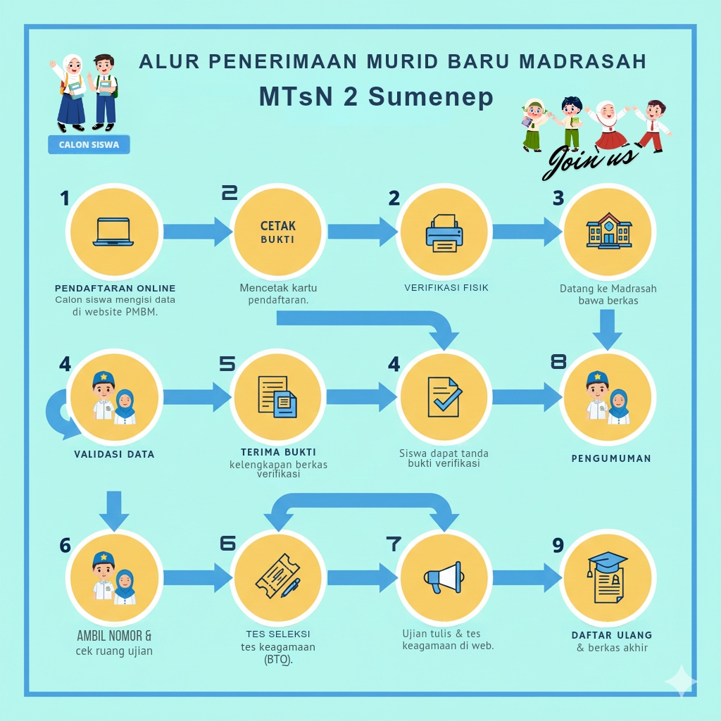 3. Calon siswa datang ke MTsN 2 Sumenep untuk VERIFIKASI, membawa Bukti pendaftaran & Kelengkapan Berkas PMBM.